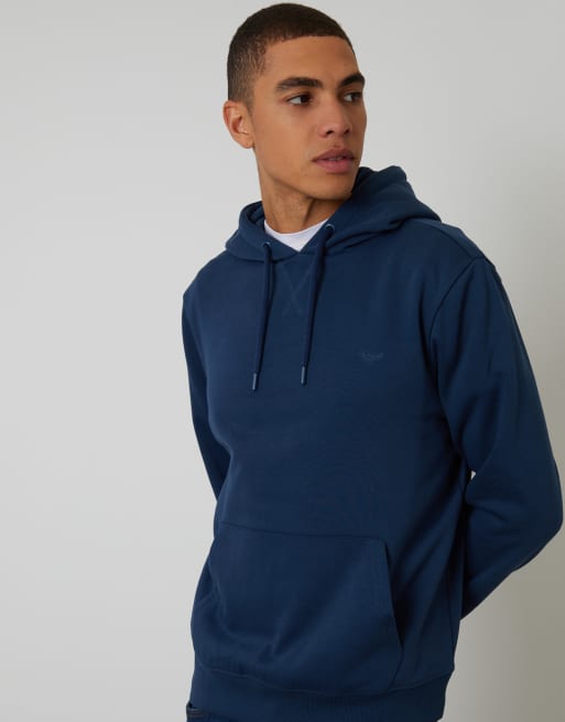 Threadbare Cotton blend pullover hoody in dark blue