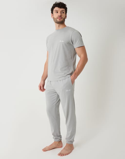 Threadbare Cotton blend script logo lounge set in mid grey