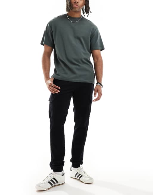 Threadbare Cotton jogger style cargo trousers with stretch in black