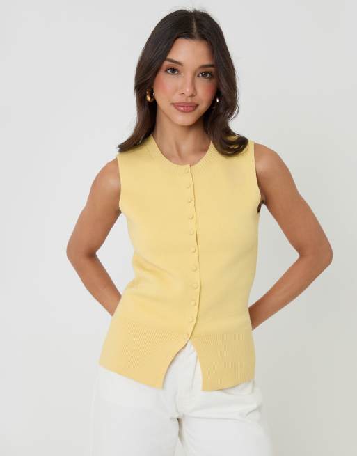 Threadbare Crew neck compact knit vest in lemon