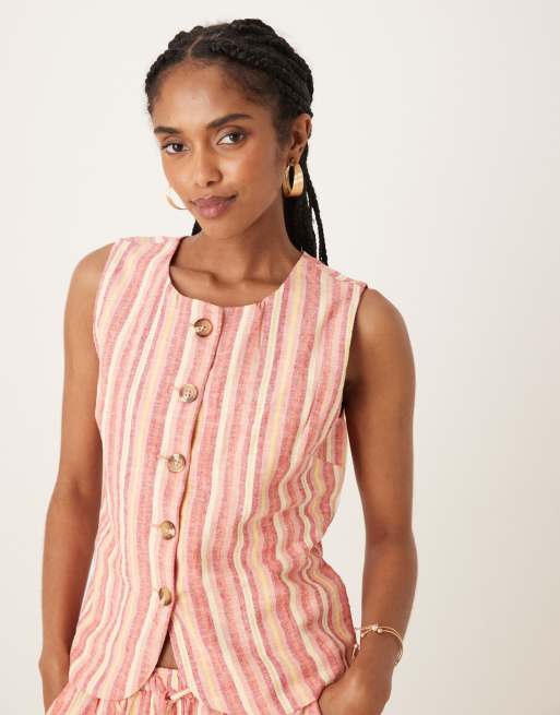 Threadbare Crew neck linen blend waistcoat in orange