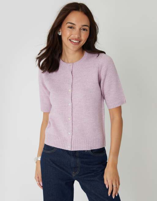 Threadbare Crew neck short sleeve knitted cardigan in pink