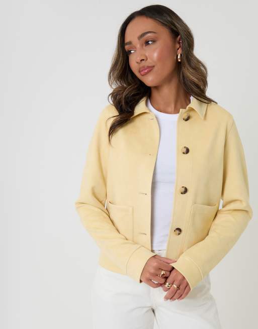 Threadbare Cropped button up suedette shacket in lemon