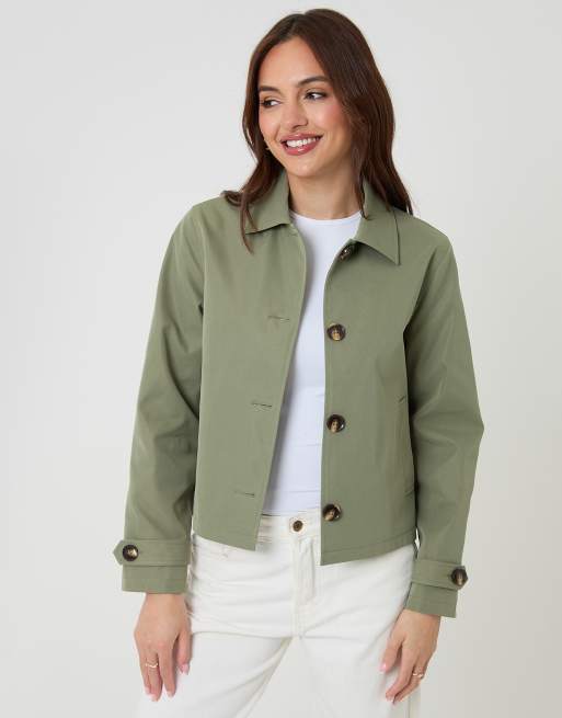 Threadbare Cropped hooded trench coat in khaki