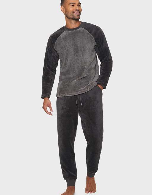 Threadbare 'cube' borg loungewear set in charcoal