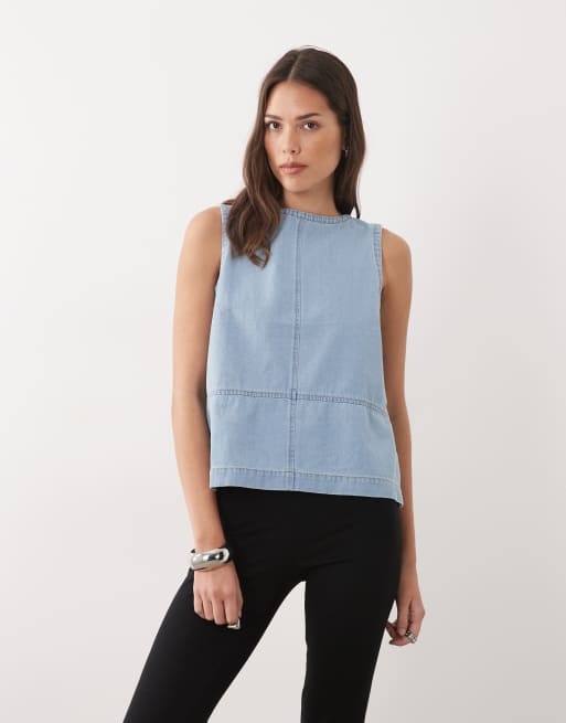 Threadbare denim sleeveless top in mid wash blue