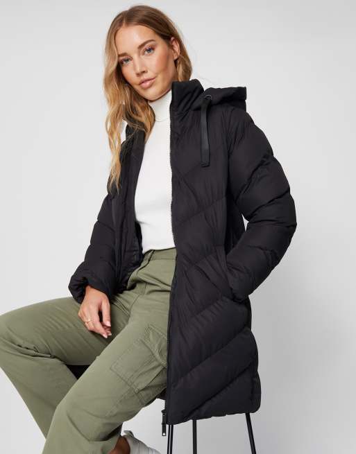 Threadbare 'dracula' hooded padded mid length jacket in black