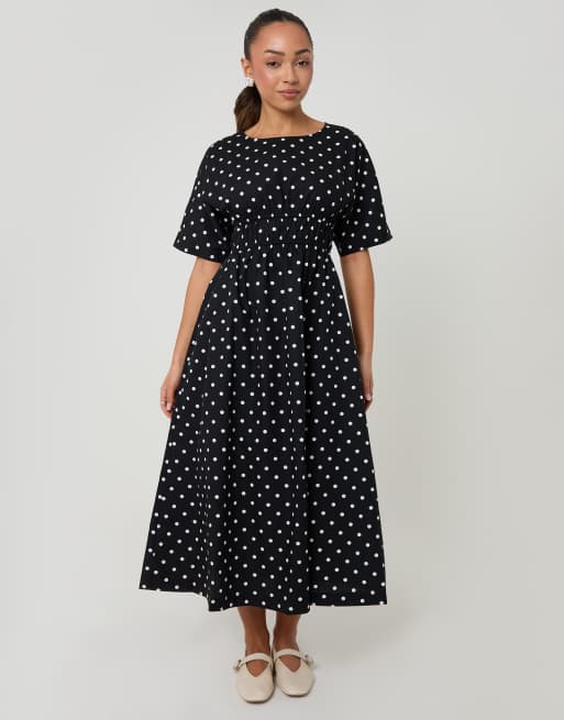 Threadbare Elasticated waist cotton poplin midi dress in black