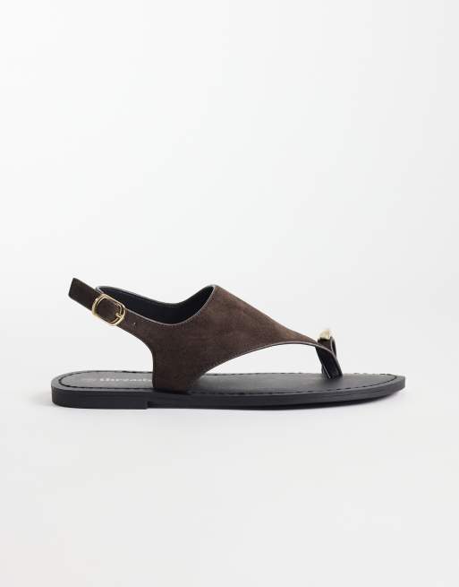 Threadbare faux suede flat sandals with toe post in chocolate brown