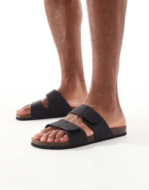 Threadbare Faux suede two strap sandals in black
