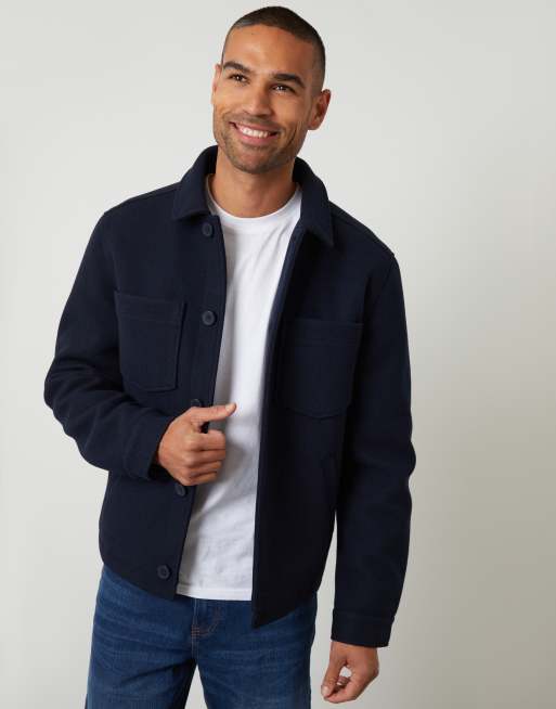 Threadbare Faux wool button up quilted shacket in navy
