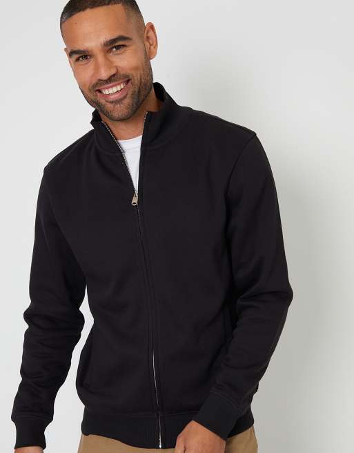 Threadbare Funnel neck zip through sweatshirt in black