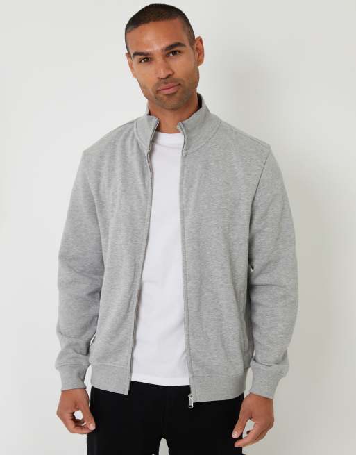 Threadbare Funnel neck zip through sweatshirt in light grey