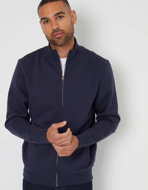 Threadbare Funnel neck zip through sweatshirt in navy