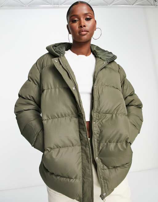 Threadbare Hayley mid length puffer jacket in khaki