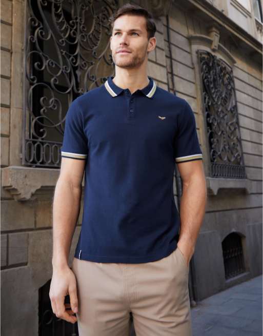 Threadbare Herringbone tipping cotton pique polo shirt in navy