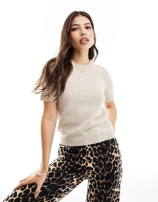 Threadbare knitted short sleeve jumper in oat