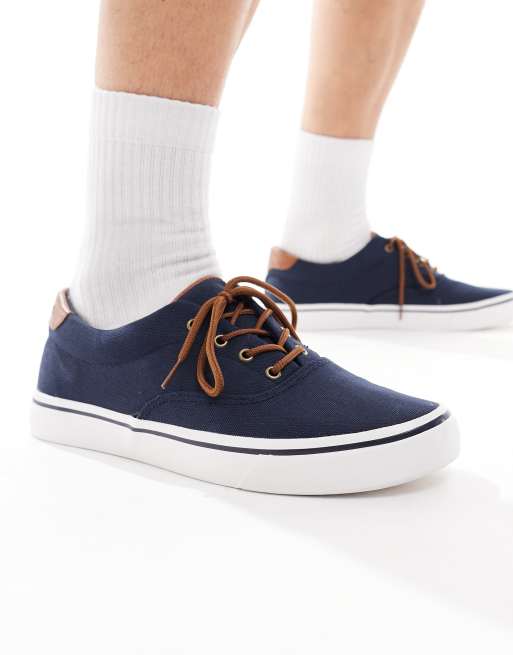 Threadbare Lace-up canvas trainers in navy
