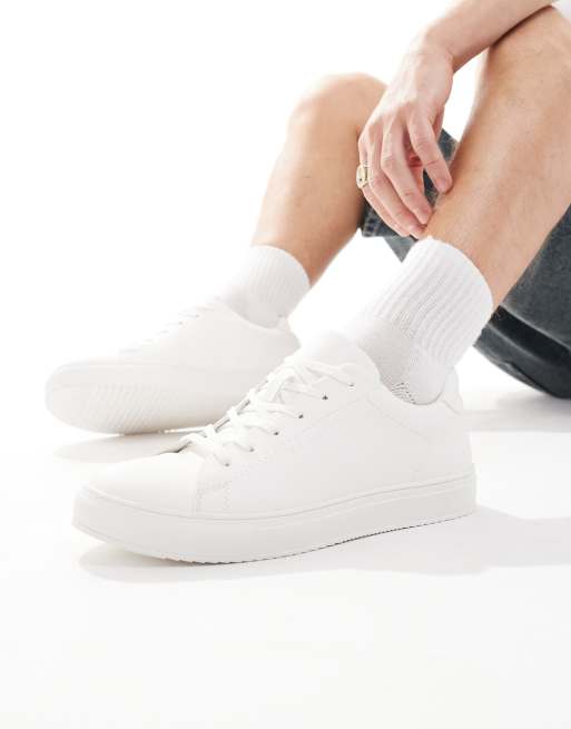Threadbare Lace-up faux leather court trainers in white