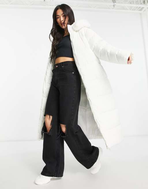 Threadbare Lazuli maxi puffer coat with faux fur trim hood in white