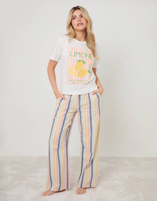 Threadbare Lemonade graphic print cotton pyjamas (2-piece set) in multi