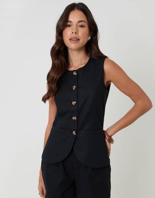 Threadbare Linen blend longline waistcoat in black