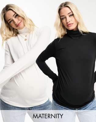 Threadbare Maternity 2 pack high neck long sleeve top in black and white