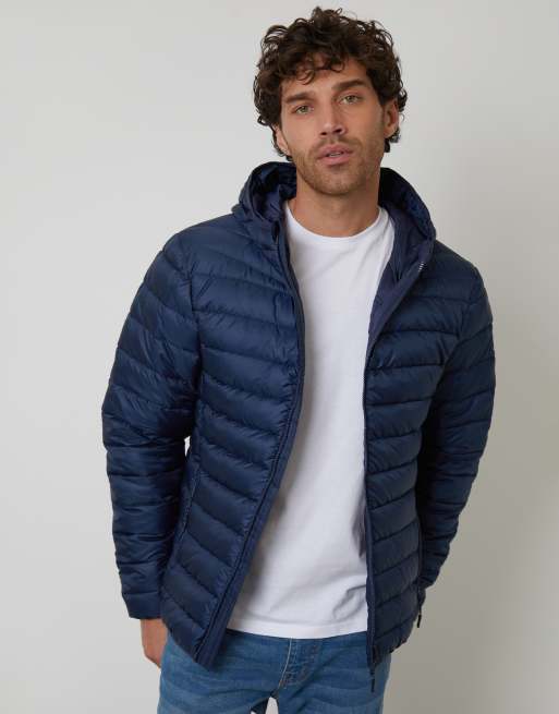 Threadbare Matte finish padded hooded jacket in navy