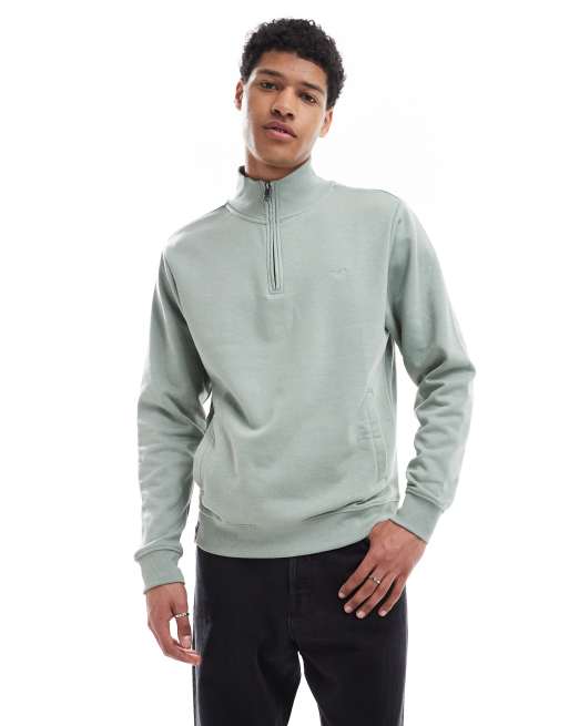 Threadbare Men's sage quarter zip sweatshirt in pale green