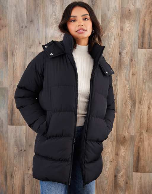 Threadbare Mid length hooded puffer coat in black