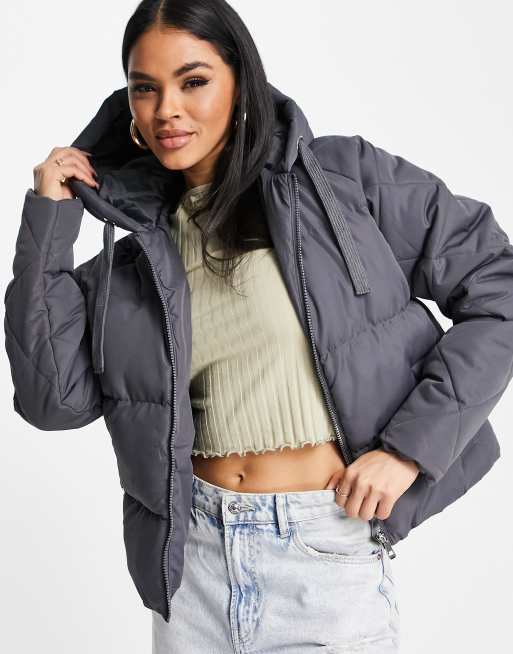 Threadbare Papaya quilted arm puffer jacket in grey