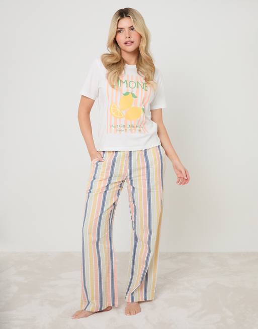 Threadbare Petite lemonade graphic print cotton pyjamas (2-piece set) in multi