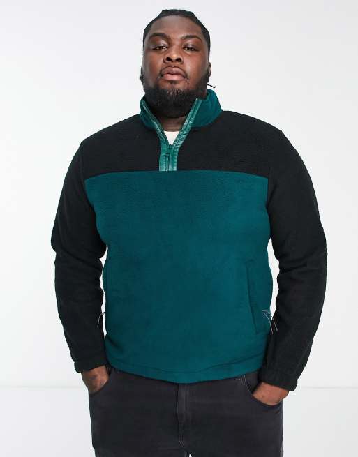 Threadbare Plus borg 1/4 zip pullover fleece in teal