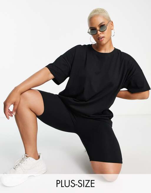 Threadbare Plus Chloe shorts and oversized t-shirt co-ord in black