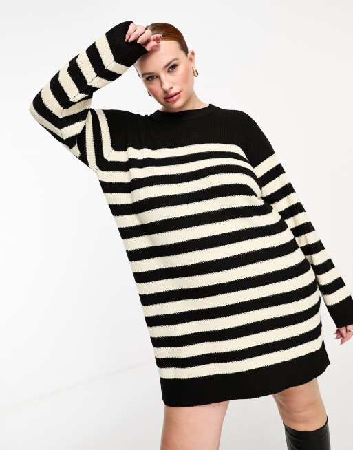 Threadbare Plus Evie midi jumper dress in black and white stripe