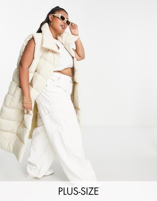 Threadbare Plus Reflex oversized longline padded gilet with pockets in stone