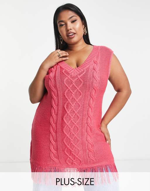 Threadbare Plus Tango knitted vest with tassels in pink