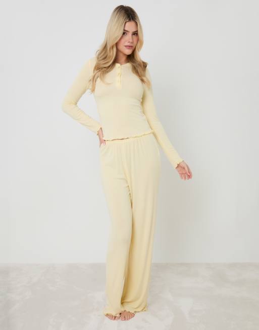 Threadbare Pointelle long sleeve henly pyjama set in yellow