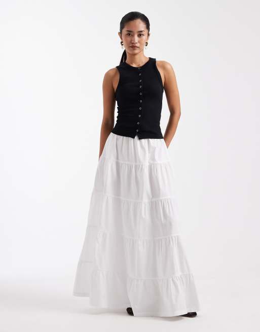 Threadbare poplin tiered maxi skirt in white