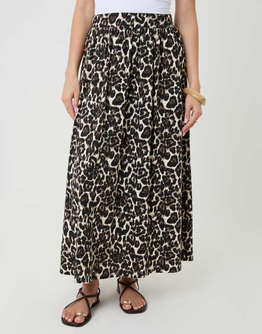 Threadbare Print jersey a-line maxi skirt in tan