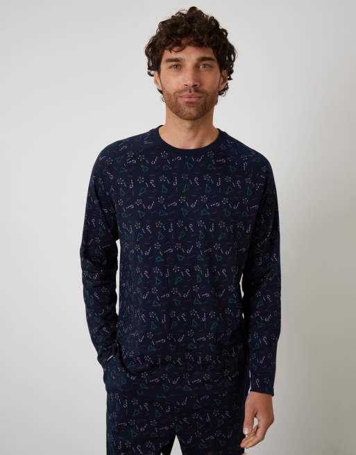 Threadbare Printed christmas long pyjamas in navy