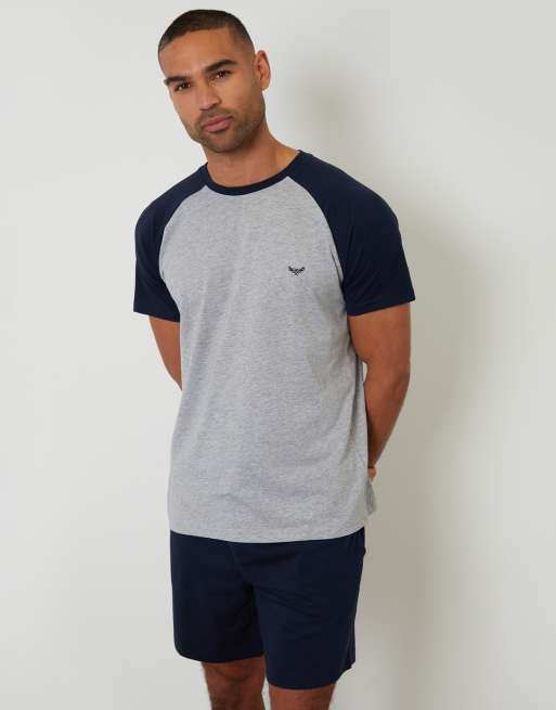 Threadbare Raglan short sleeve top & shorts lounge set in navy