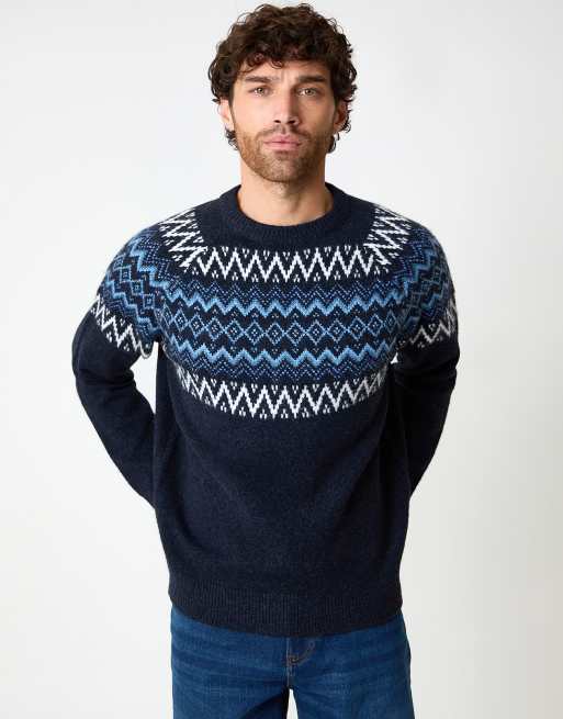 Threadbare Raglan sleeve fairisle christmas jumper in navy