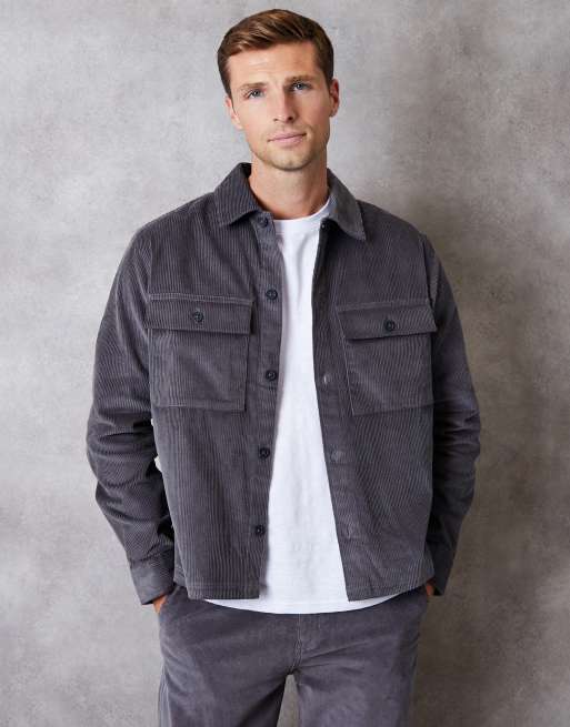 Threadbare Relaxed cropped fit corduroy shacket in dark grey