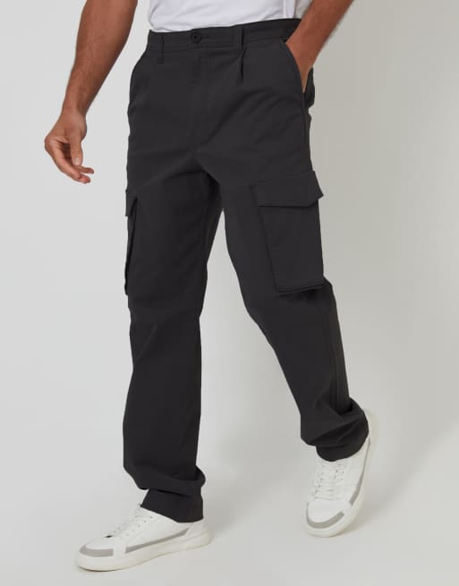 Threadbare Relaxed fit cotton cargo trousers with stretch in black