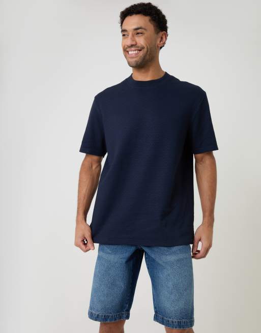 Threadbare Relaxed fit textured crew neck t-shirt in navy