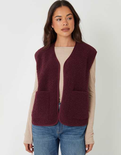 Threadbare Reversible fleece borg gilet in wine