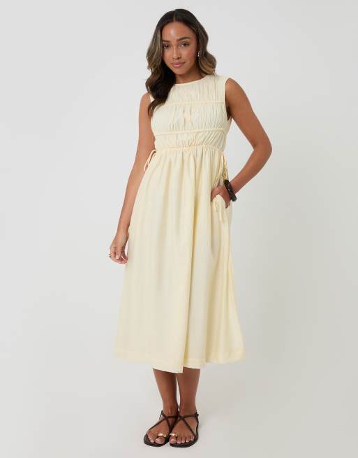 Threadbare Ruched drawstring midi dress in yellow