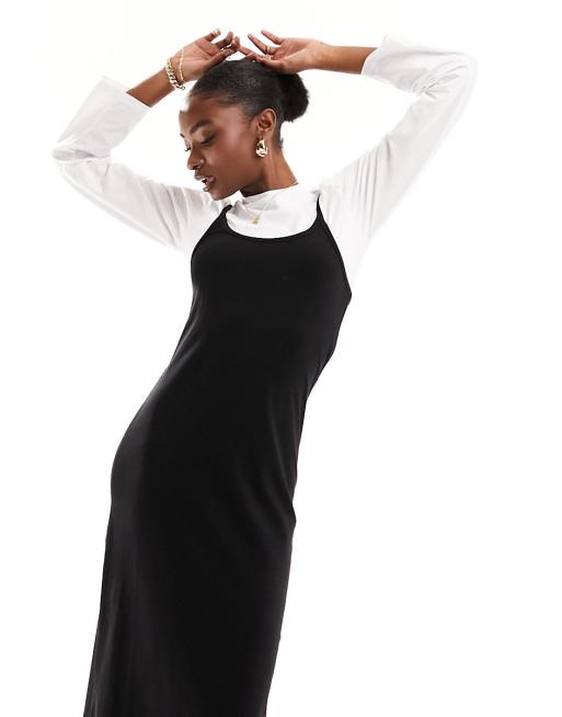 Threadbare Sabrina 2 in 1 long sleeve top and cami midi dress in black