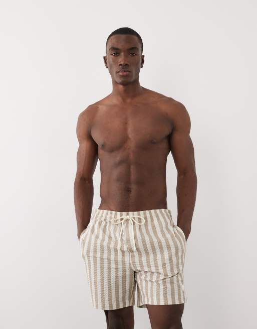 Threadbare seersucker swim shorts in stone and white stripe